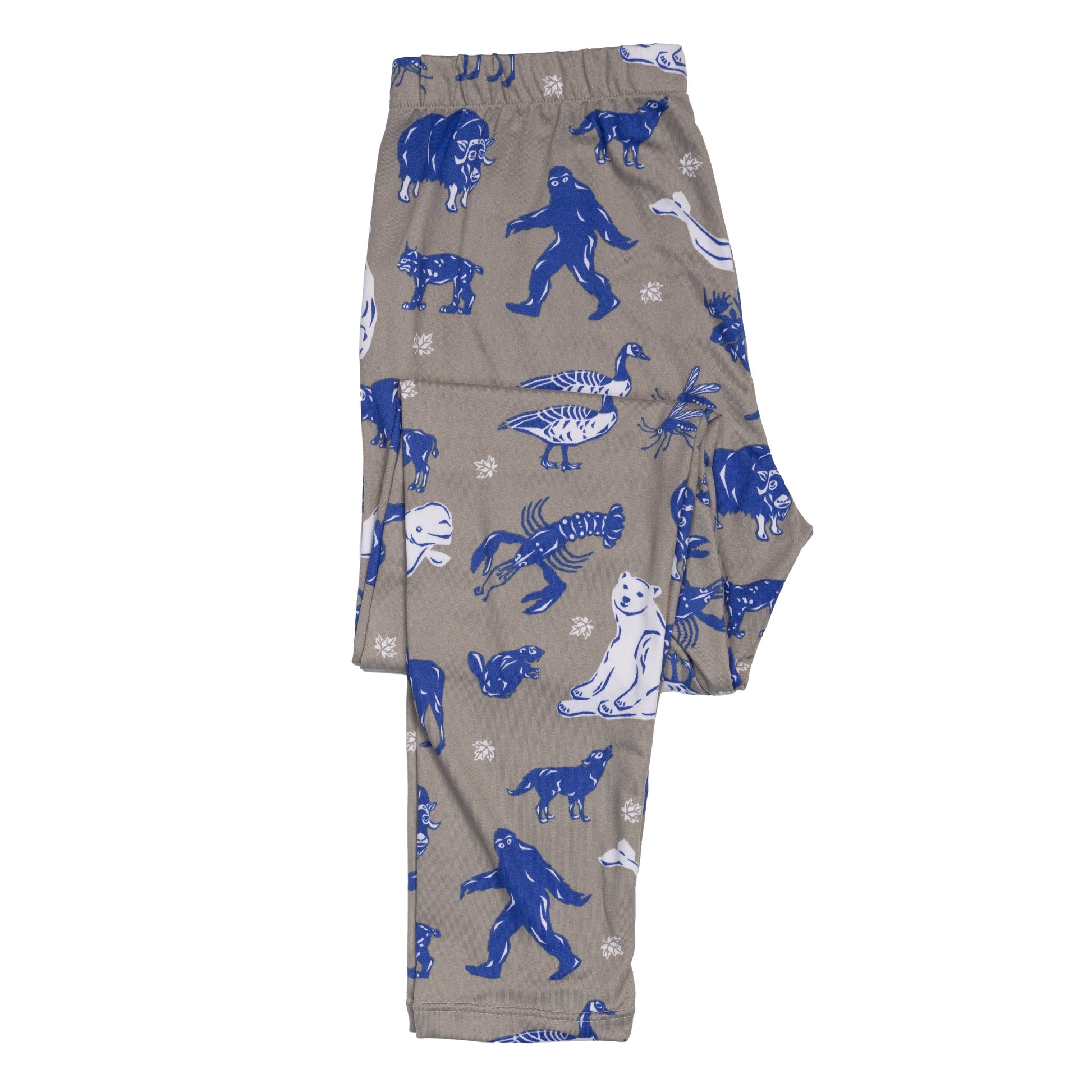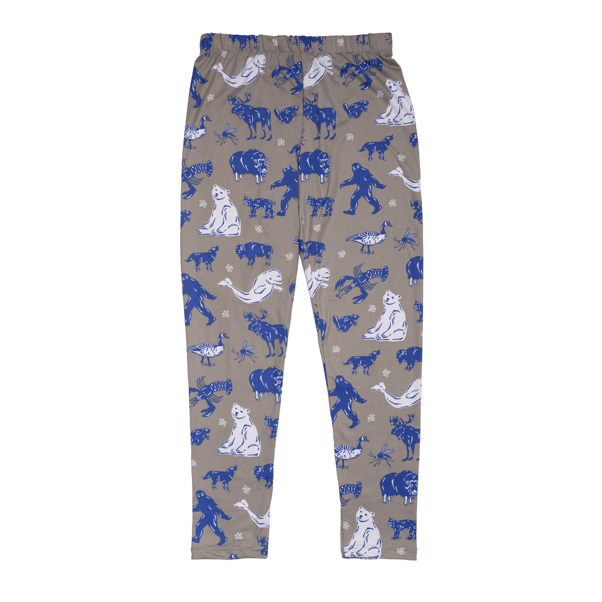 Our pants come with all 12 animals of the Canadian Zodiac printed on the fabric.